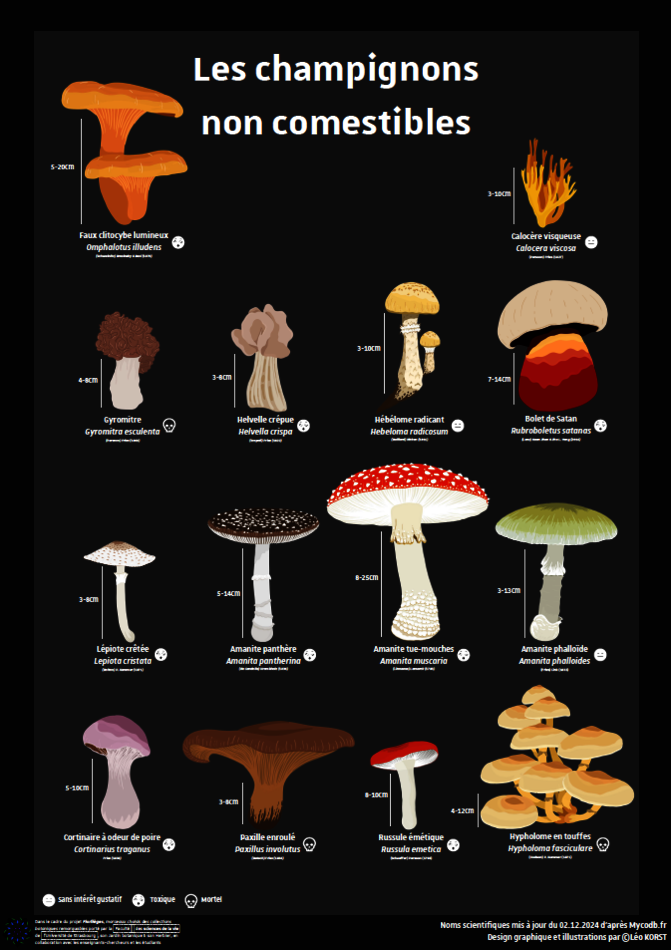 Avec cette exposition patrimoniale, nous avons égelment profité pour mettre en avant quelques notions grand public sur la connaissance des champignons grâce à des panneaux réalisés avec l'aide de nos étudiants biologistes et artistes :